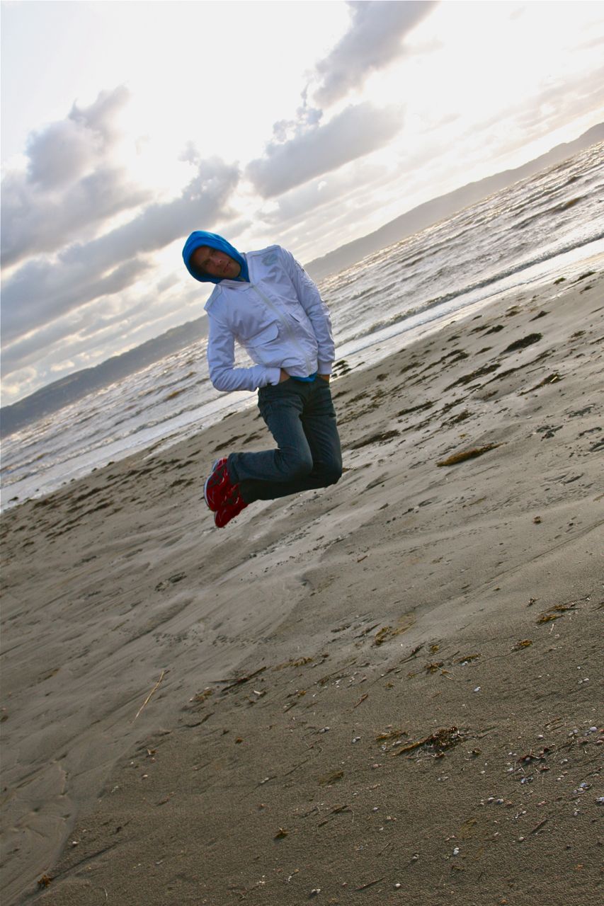Idag hade vi bra väder stora delar av dagen (förutom störtskuren vid lunch) och vi åkte lite söderut längs stranden för Sara ville springa på nya ställen. Vi tog oss till kustremsan Mellbystrand och Skummeslöv (om nu någon känner till dessa ortsnamn) och Sara tog en sväng om på en slinga i underbar strandskog. Själv agerade jag lite alltiallo. Jag gick motsatt håll, jag var lite fotograf och lite chaufför. Men även om jag inte tränade fick jag med mina smått kända hopp på stranden.